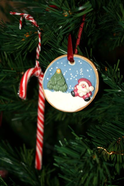 Muy buena idea lo del papá noel en forma de círculo. Y el árbol ha quedado precioso, creo que cada vez que pasara por su lado me sería casi imposible no comer una galleta, jeje.